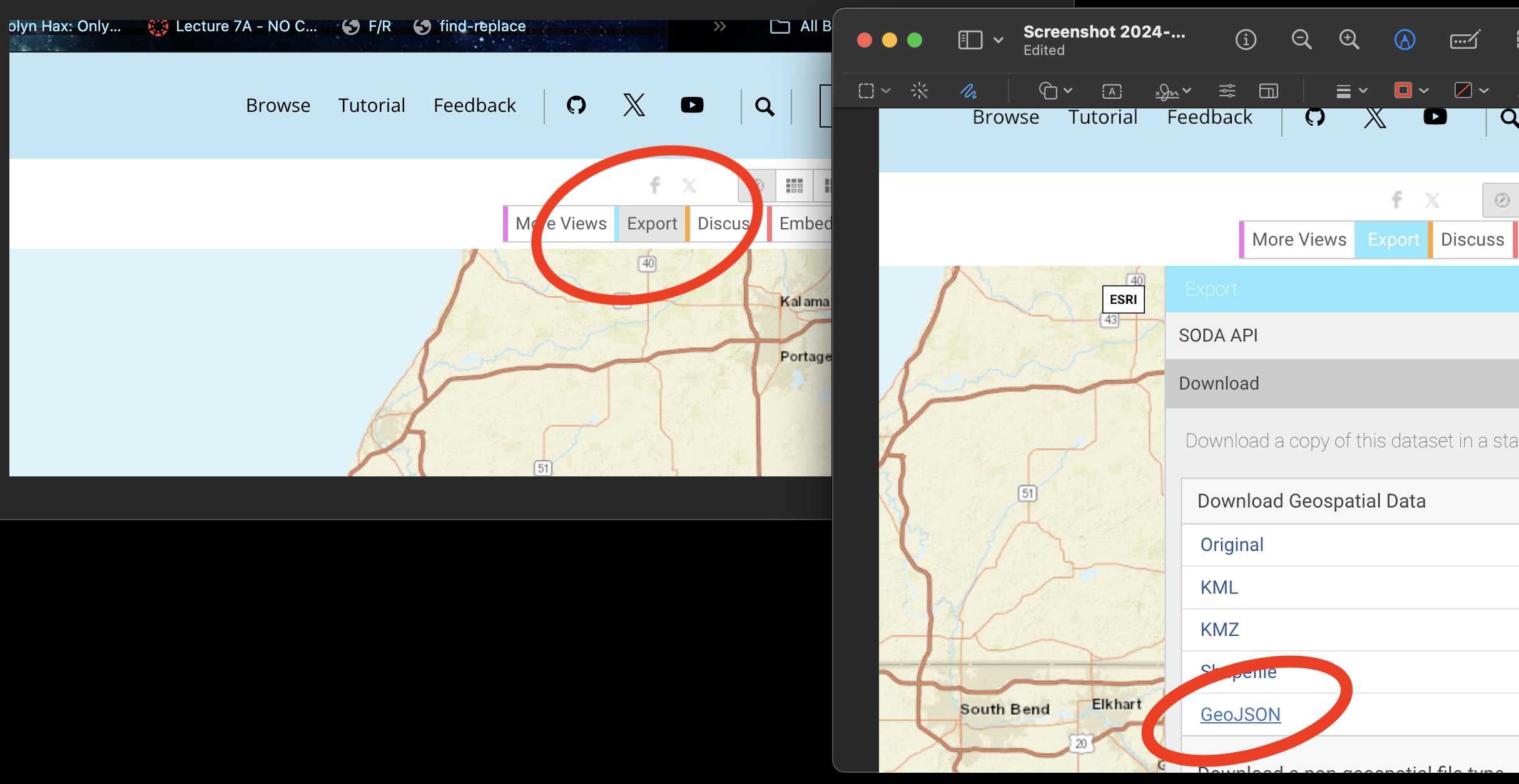 On the top right, click Export, then choose the GeoJSON format. Move/upload the file into your project folder.