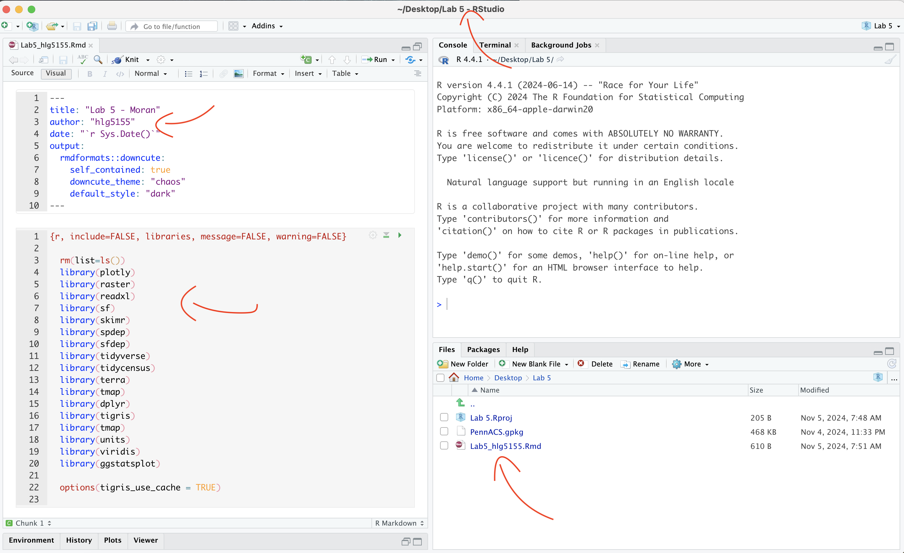 Your html and your .Rmd file for your main lab 5 (up to/including