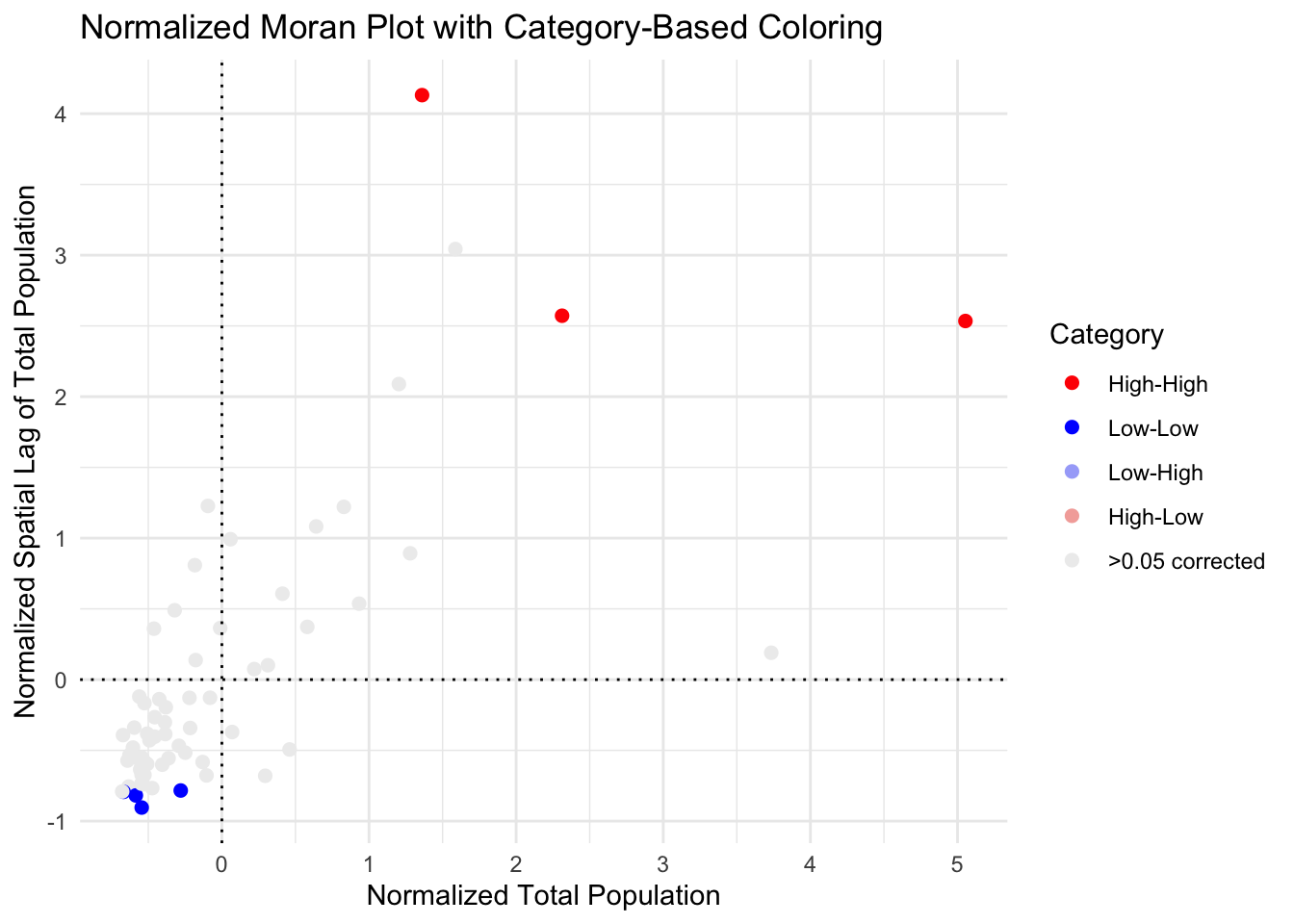 title = "Normalized Moran Plot with Category-Based Coloring") +
