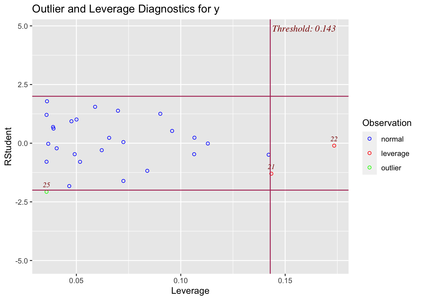 # Influential points (not you can't change the threshold here for influential)