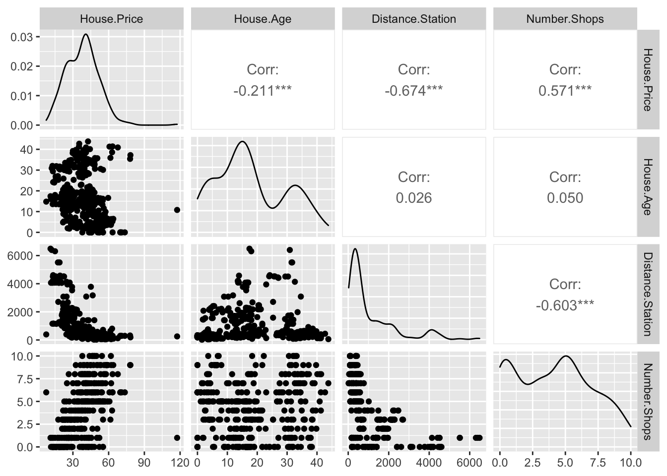 ## lm(formula = House.Price ~ House.Age + Distance.Station + Number.Shops,
