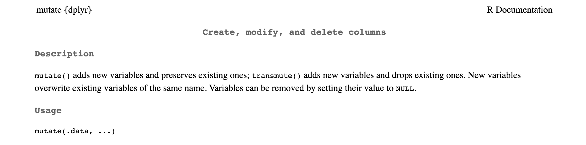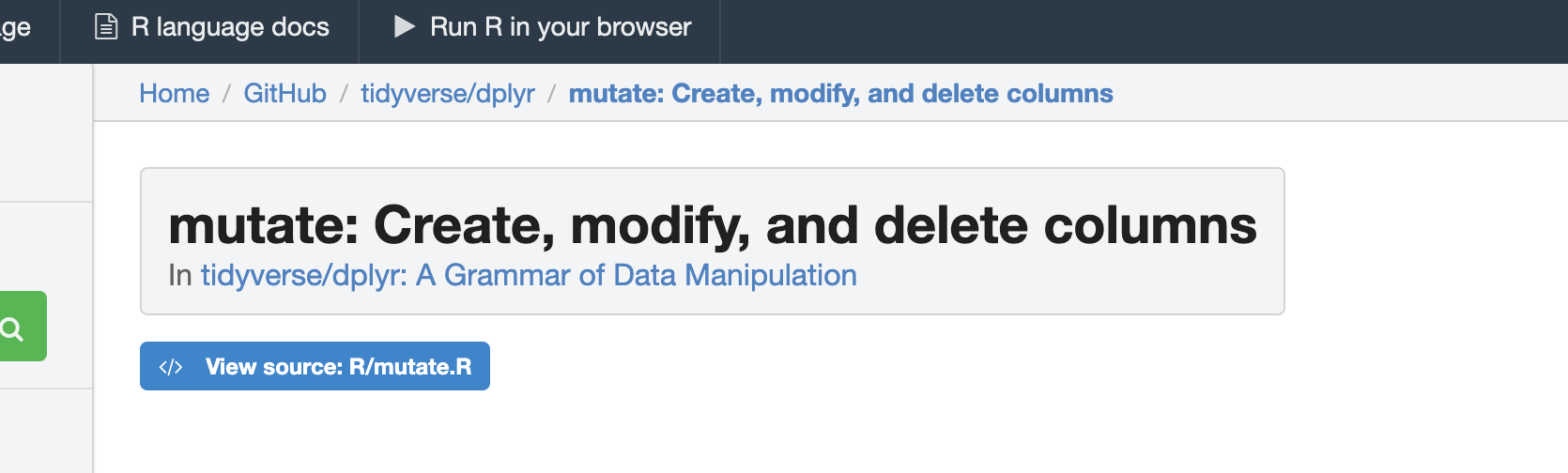 Different websites have different ways of writing the things. For example, here are four common files you might see when looking at the mutate command which is a part of the dplyr package.