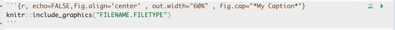 - fig.cap - “your caption” : Add a caption (IN QUOTES). I used * to make mine italic.