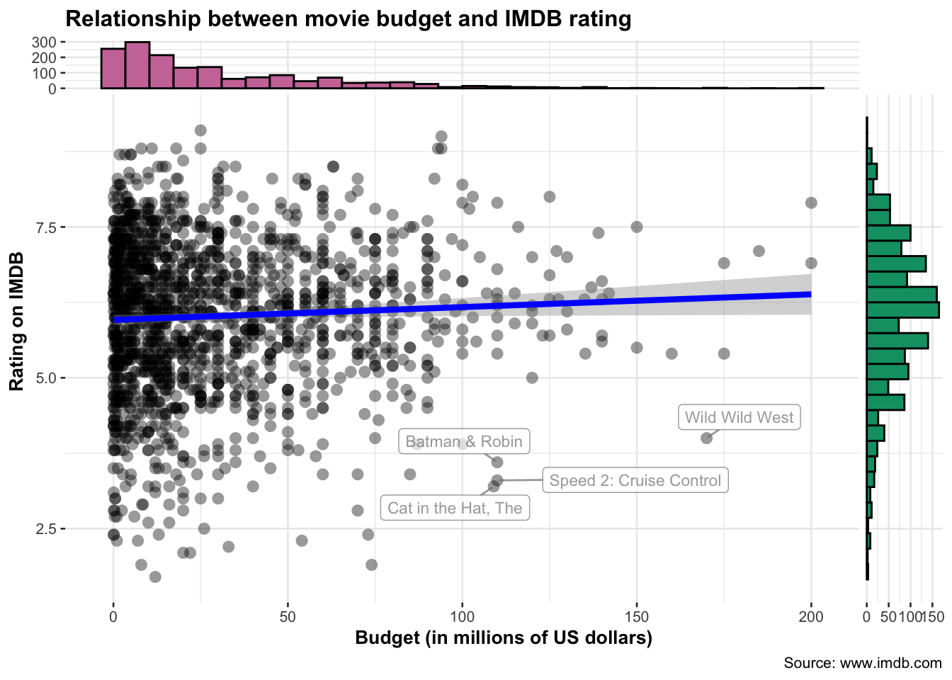 label.expression = rating < 5 & budget > 100, ## decide which which points to label