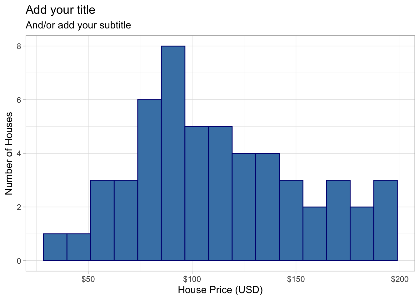geom_histogram(bins = 15, color="navy",fill = "steelblue") +