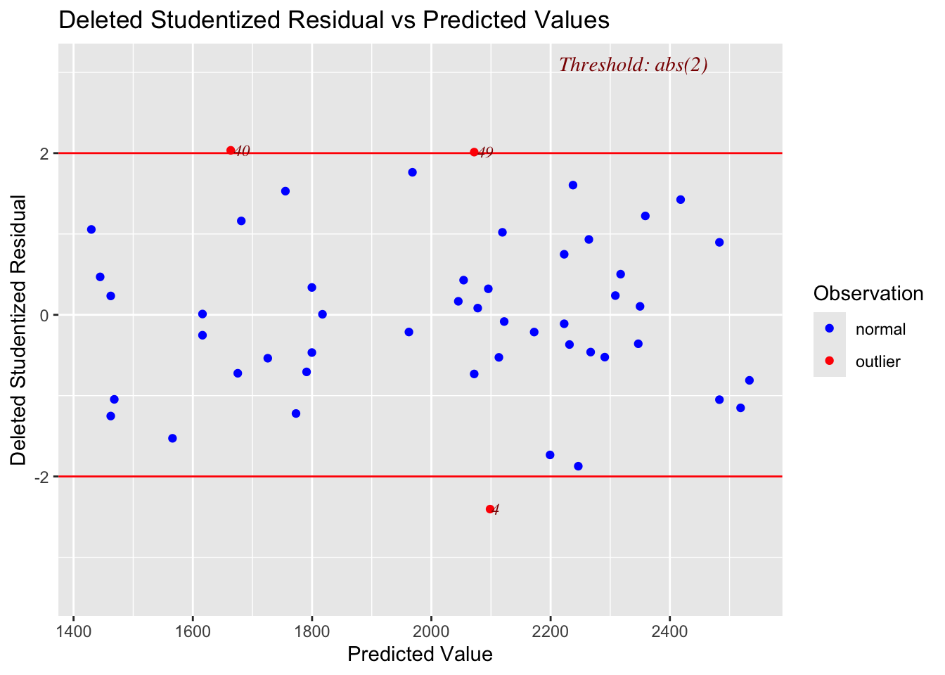 The code to do this is pretty simple from the olsrr package. If this is the scatterplot: