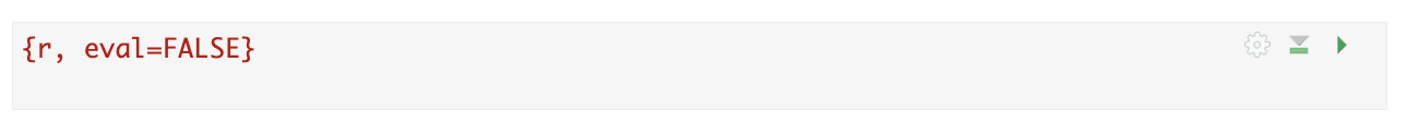 - In the top part of any problem code chunks, type eval=FALSE (see screenshot below), then try pressing knit. You might find that you have to stop quite a few code chunks running. This will allow me to see your code and grade what you have.