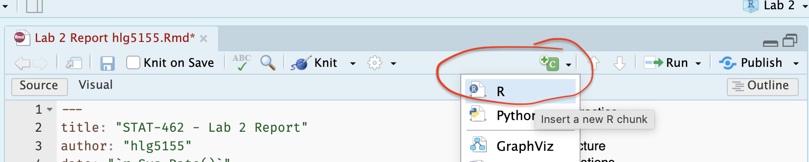 [4F] Click knit. This should work, ask you to save (then click knit again) and create a html file in your lab 2 folder AND show you it on your screen. IF YOU HAVE PROBLEMS ASK FOR HELP
