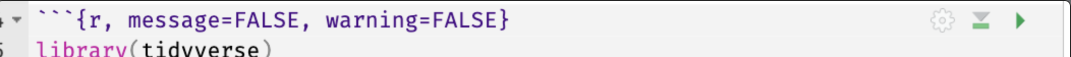 [C] Now press knit. You should see that the library loading text makes your report messy. We are going to fix this using code chunk options.