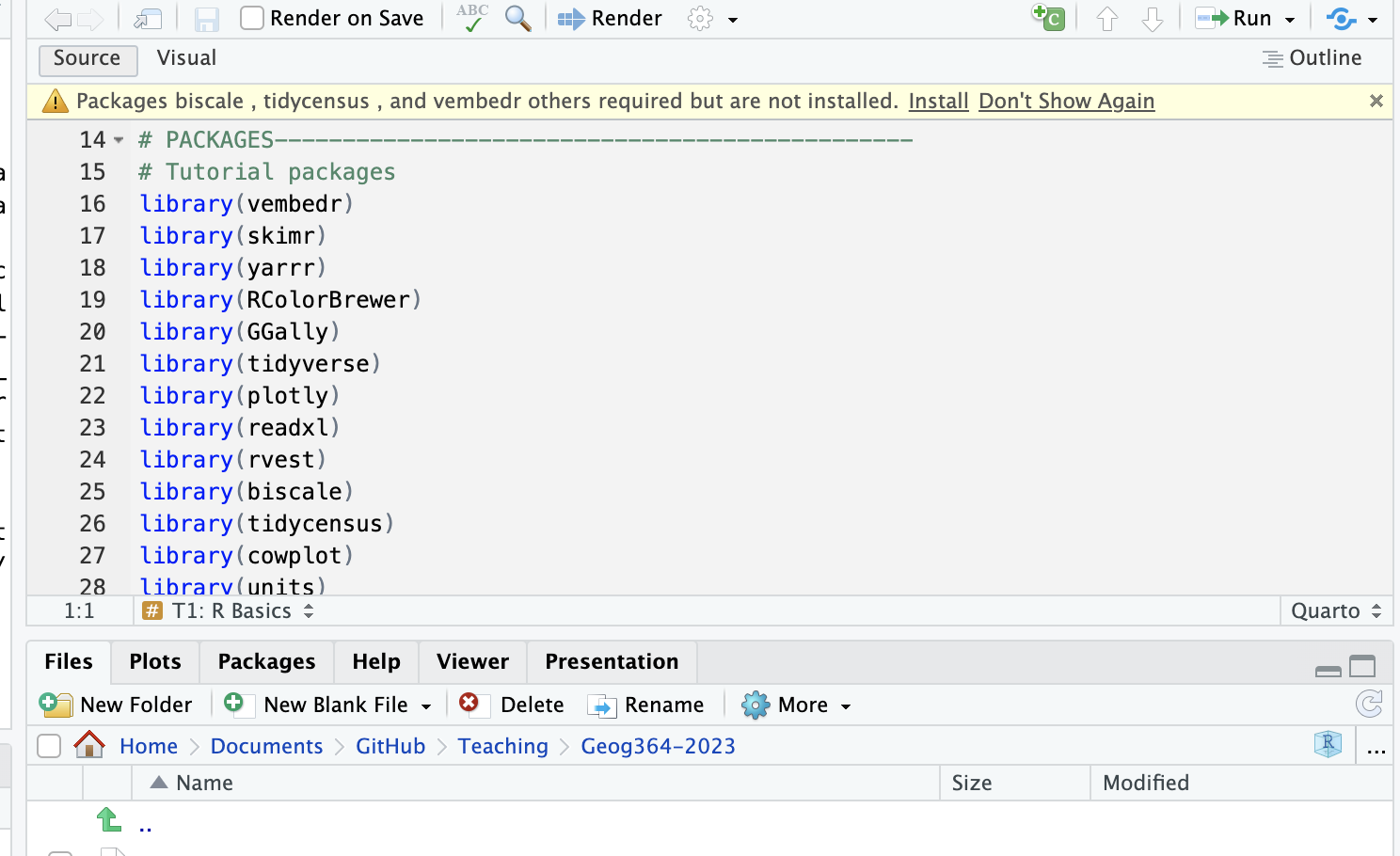 R is open source, so over the last 20 years, millions of useful commands have been written that we might want to use. To make life easier, commands are grouped together into collections called Packages or Libraries (two names for the same thing). For example, one package might make pretty plots, another might focus on efficient Bayesian analysis.