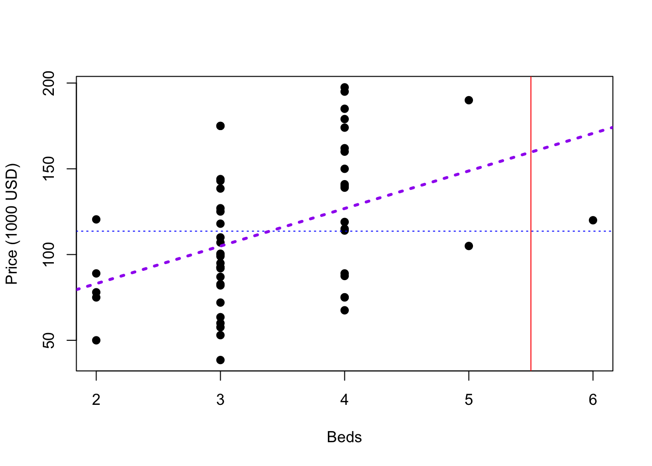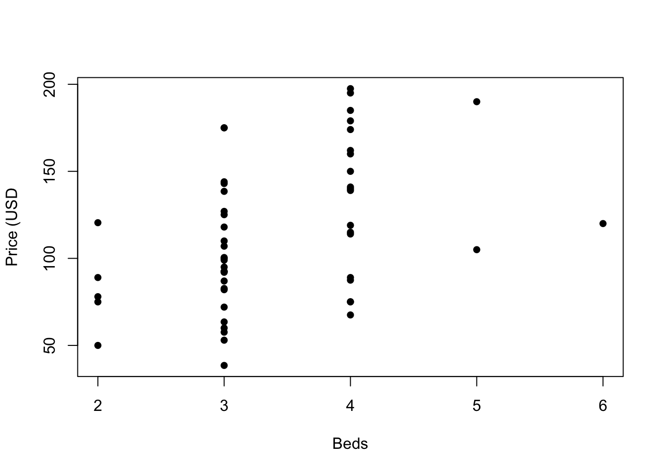 xlab="Beds", ylab="Price (1000 USD)", main="",