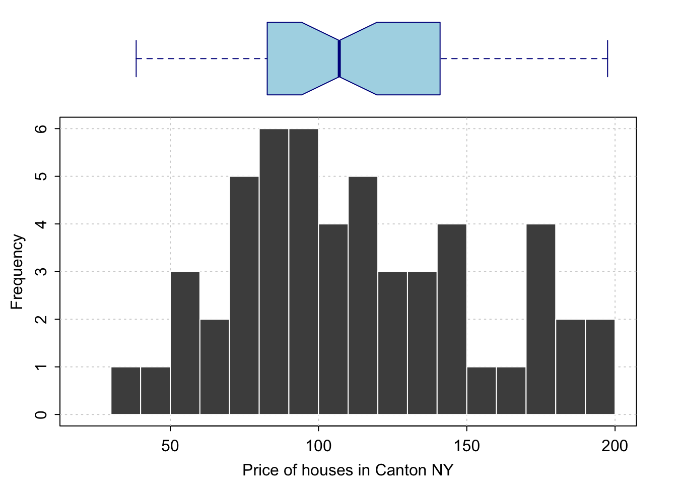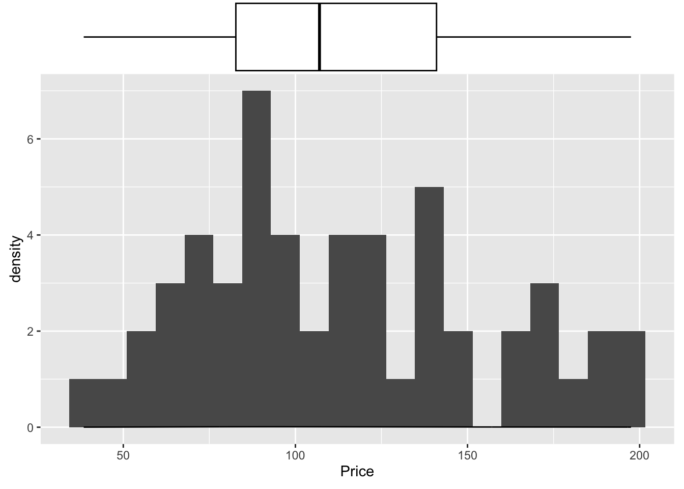 Again, I am using the HousesNY example dataset that I discussed earlier with the bed and price column names. You can see that each command is joined by a “+”.