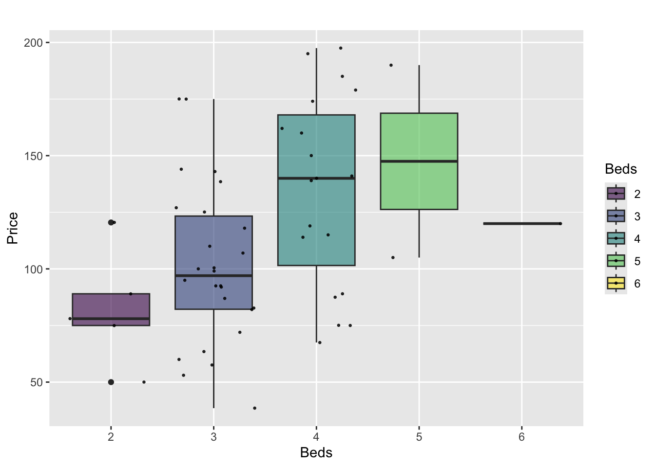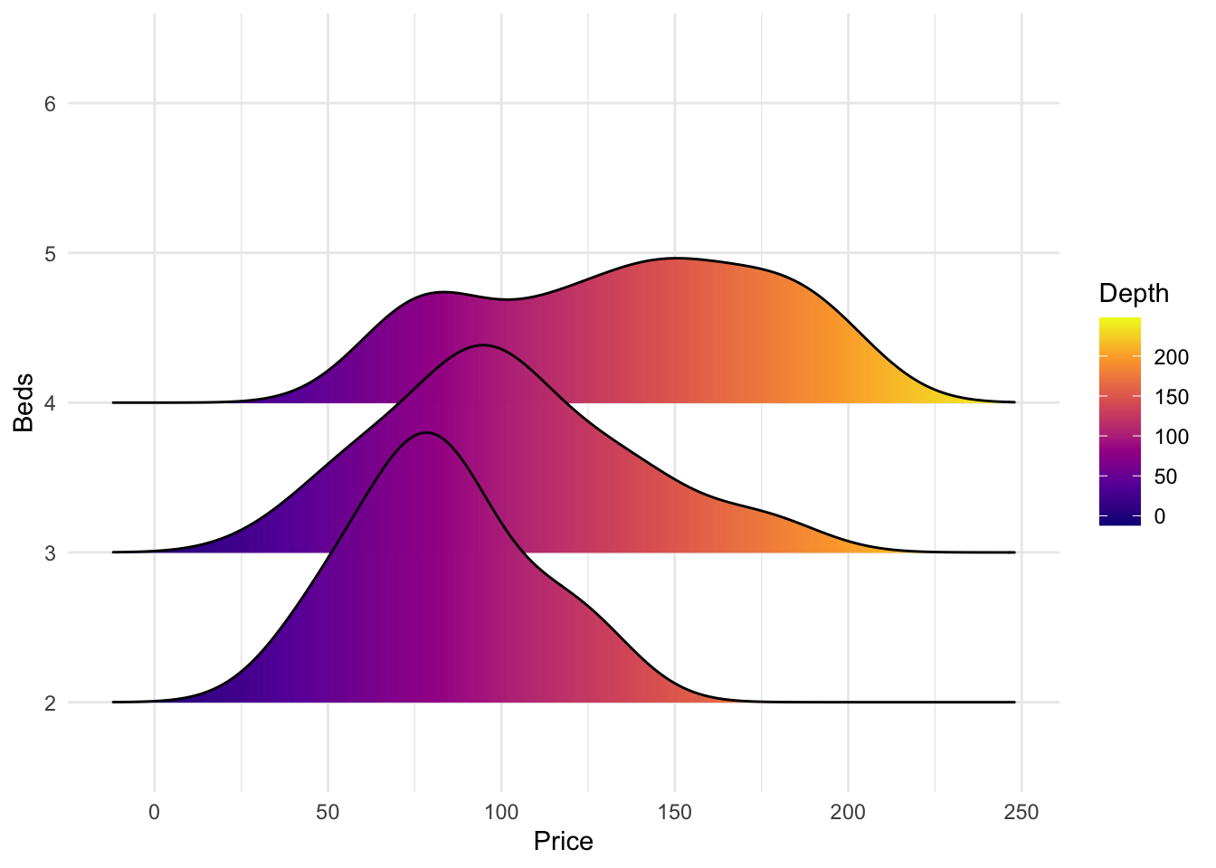 ggplot( aes(y=Beds, x=Price, fill=Beds)) +