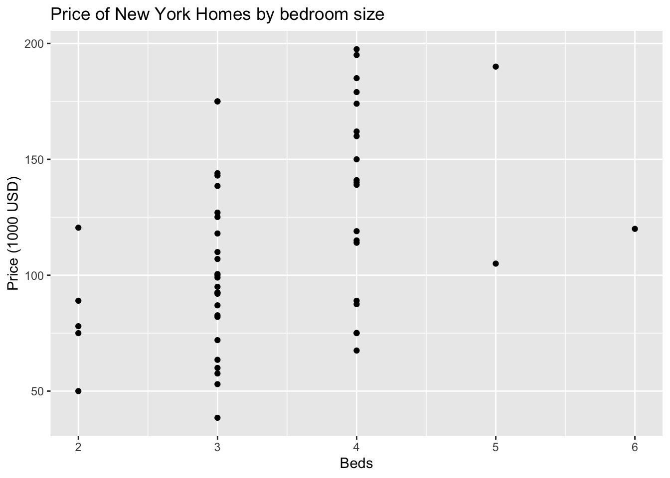 plot(HousesNY$Price ~ HousesNY$Beds,