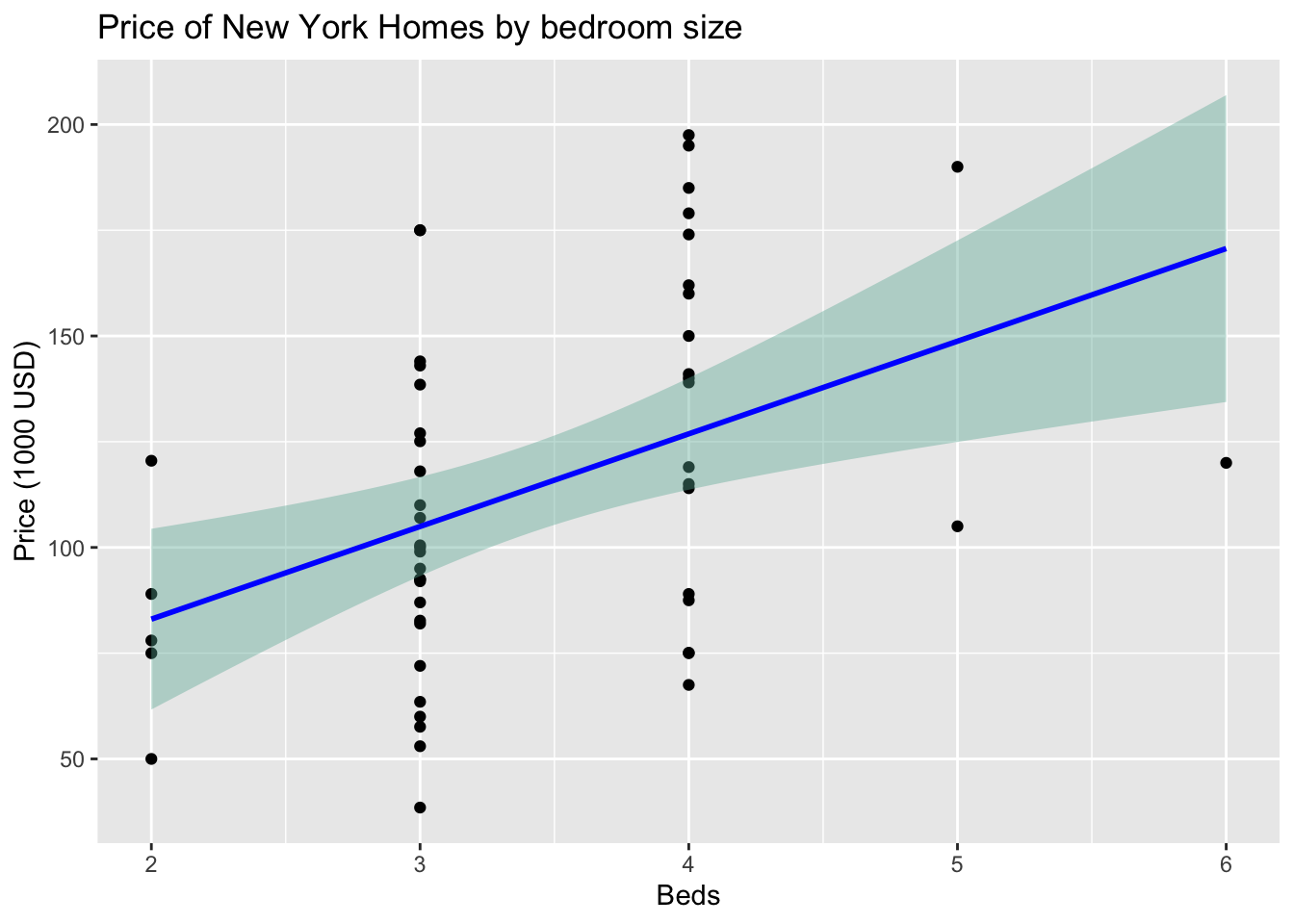 xlab("Beds") + ylab("Price (1000 USD)")+